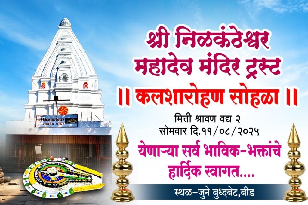बीड शहरातील खासबाग परिसरातील जुने बुद्धबेट येथील निळकंठेश्वर महादेव मंदिरात श्रावण महिन्यातील तिसऱ्या सोमवारी, म्हणजेच ११ ऑगस्ट २०२५ रोजी कलशारोहण सोहळ्याचे आयोजन करण्यात आले आहे.